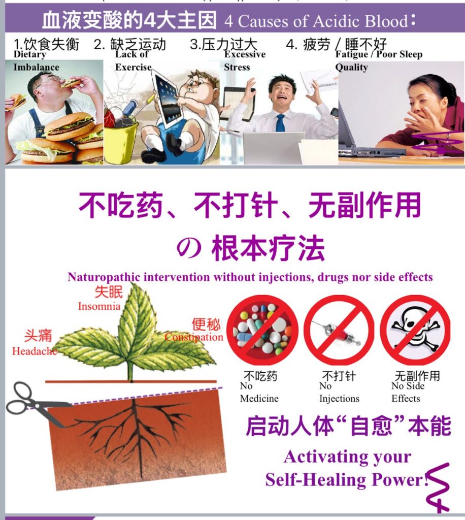 我们去医院做身体检查时,医生第一件事就是叫我们验血。因为 血液里的代谢废物(垃圾毒素)多少决定一个人的健康。When we go to the hospital for a check-up, the doctor first asks for a blood test because the amount of waste in the blood reflects our health.